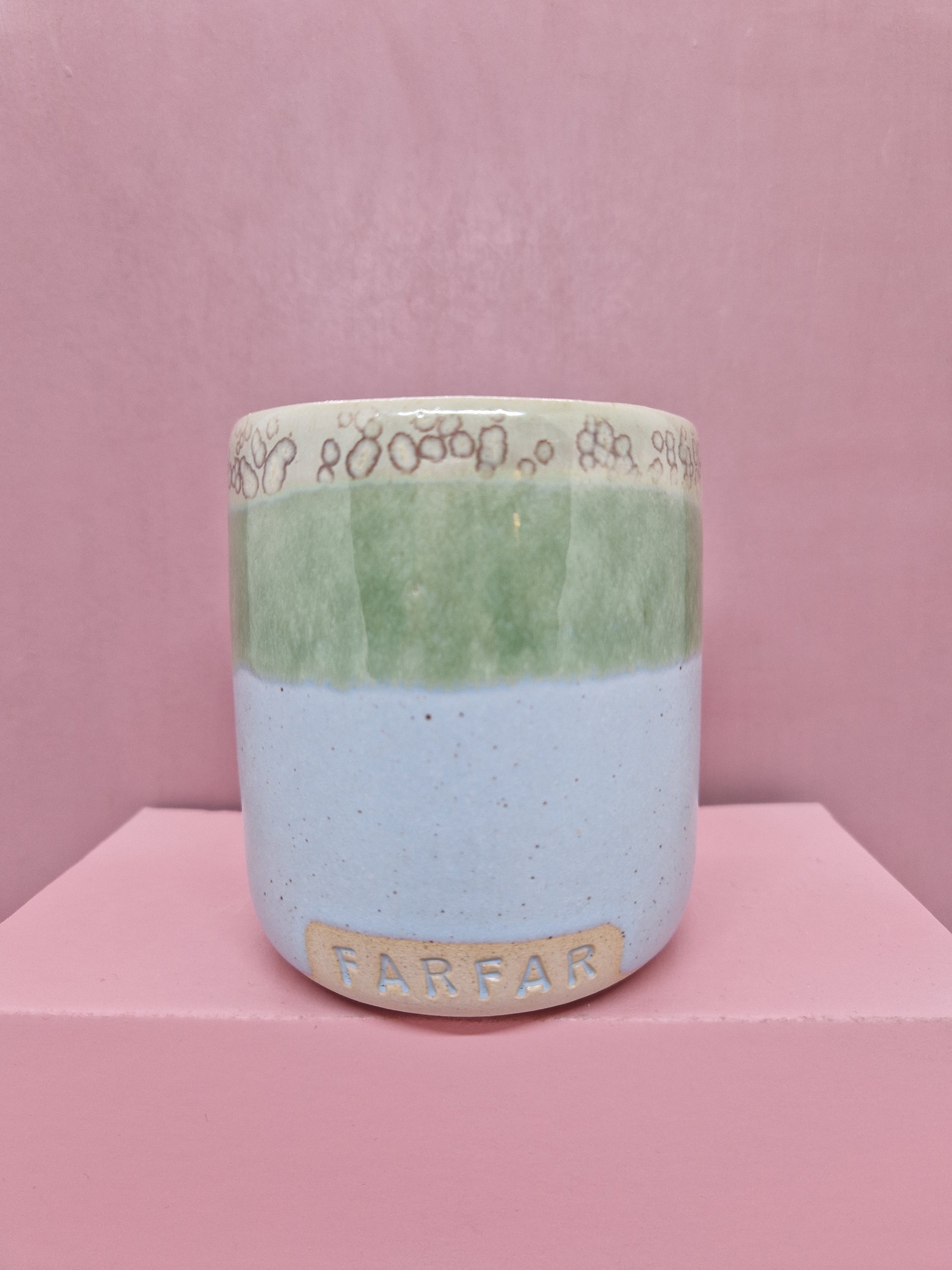 Høj kop med tekst
